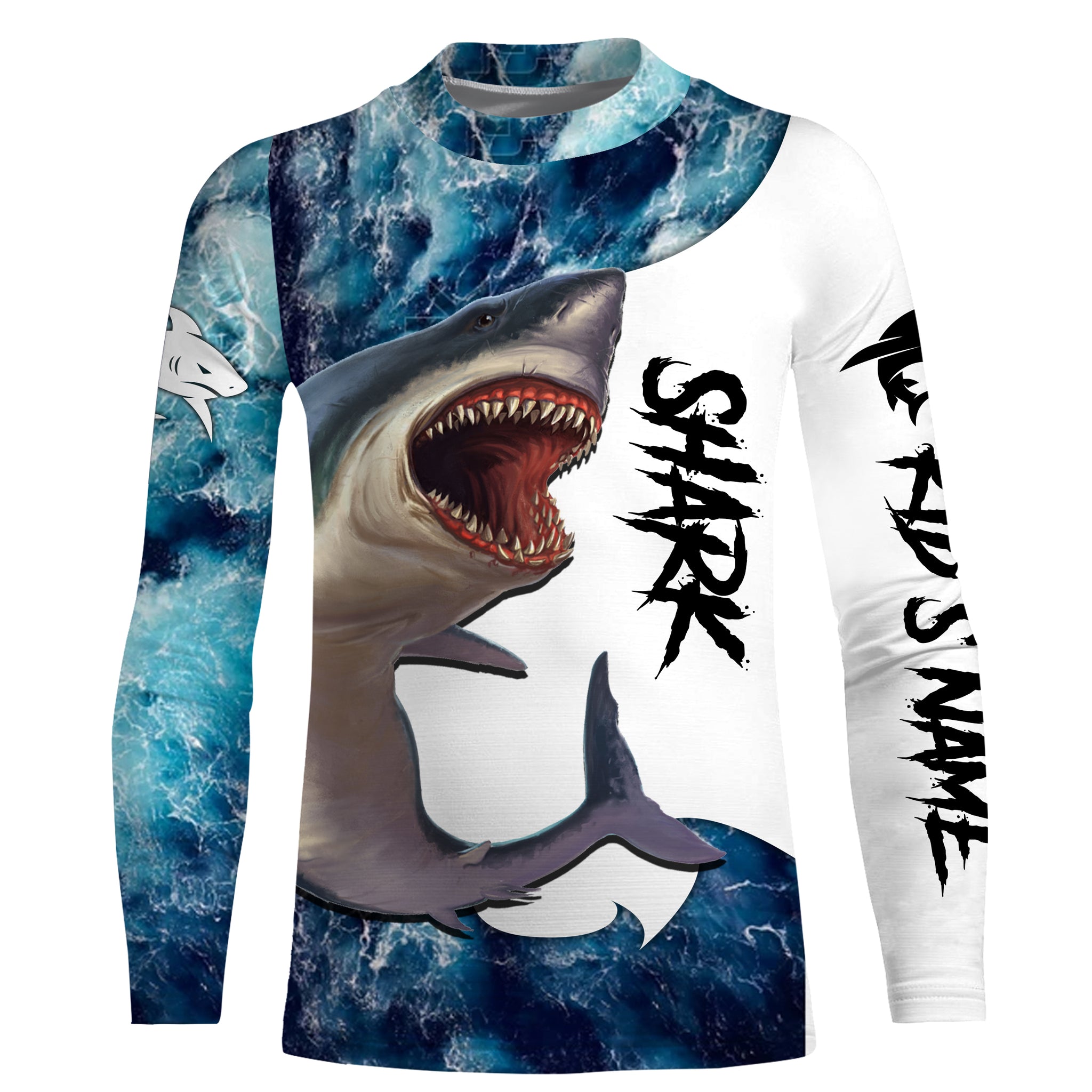 Shark Fishing blue ocean sea wave camo Custom long sleeve performance fishing jerseys shirts NQS3368