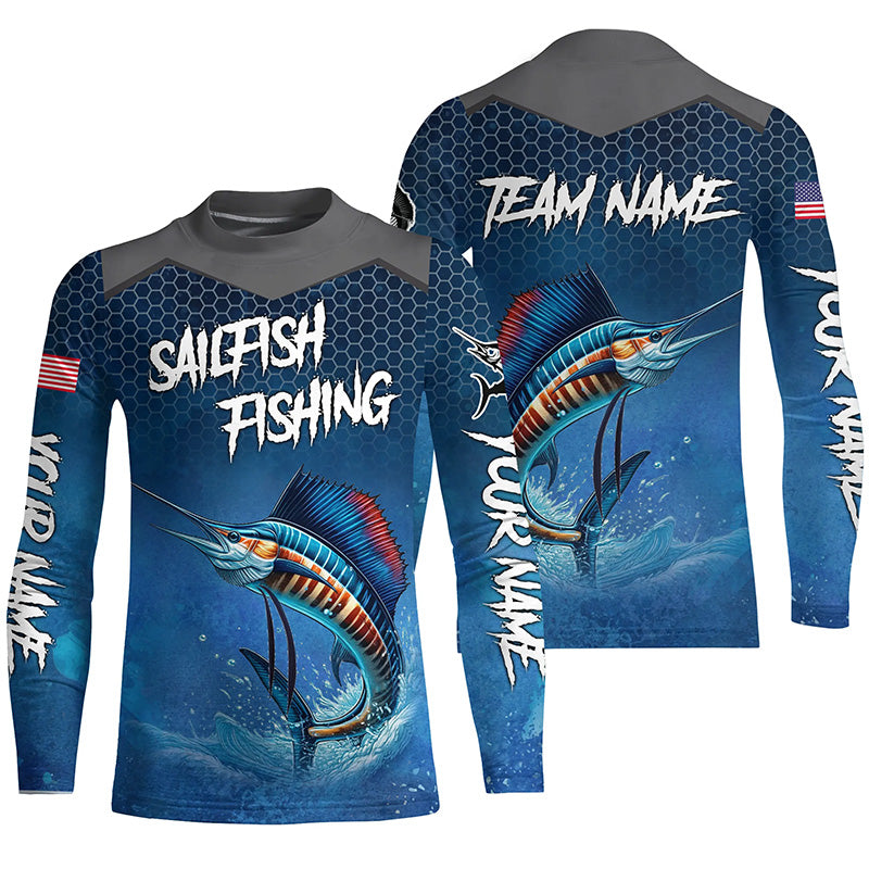 Blue camo Sailfish fishing Custom performance long sleeve team Sailfish fishing tournament shirts NQS7773