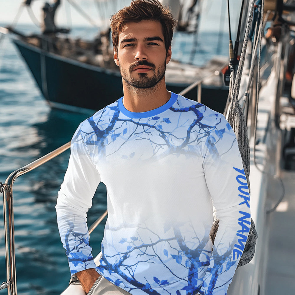 Personalized name White and Blue Camo performance long sleeve team fishing tournament shirts NQS9555