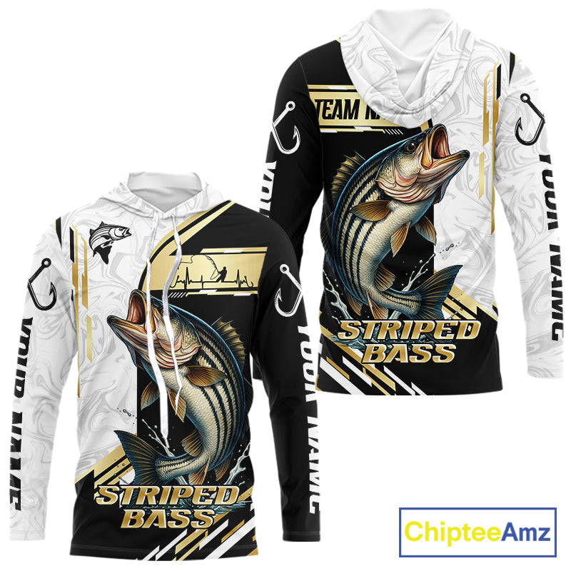 Personalized Striped Bass fishing shirts Custom sun protection striper fishing team jerseys | Gold NQS11159