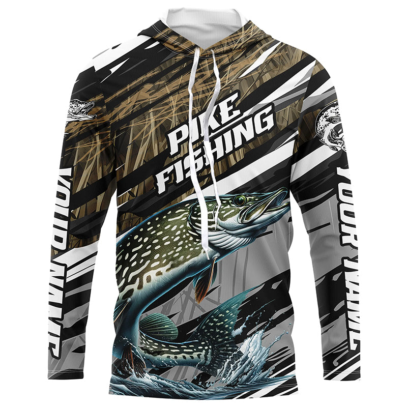 Pike Fishing Grass Camo Custom Long Sleeve Shirts, Pike Uv Protection Tournament Fishing Jerseys IPHW6081