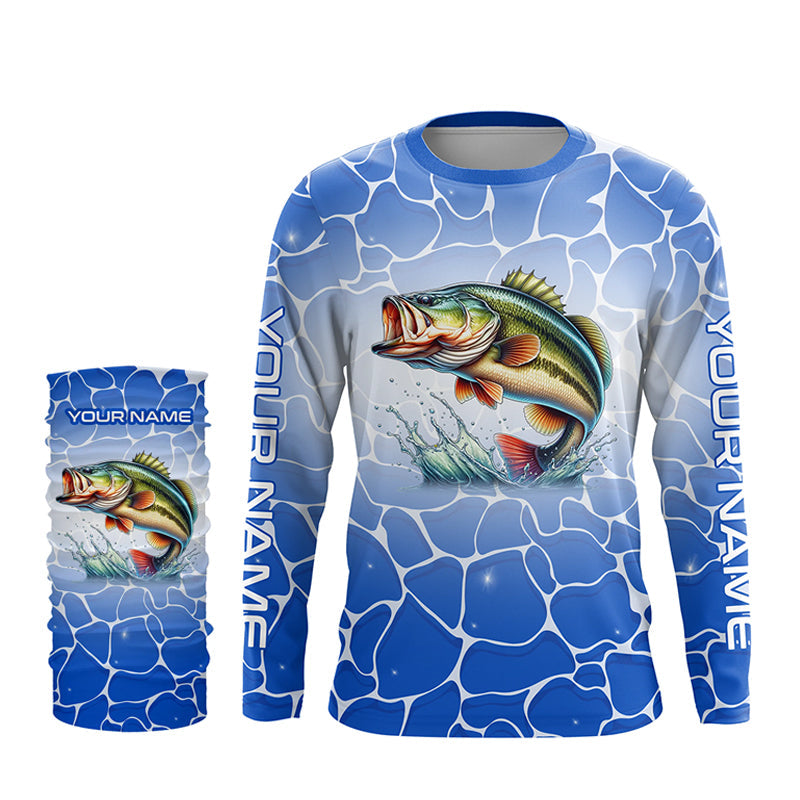Personalized blue water camo Largemouth bass Long Sleeve Fishing Shirts, Tournament Fishing Jerseys NQS7440