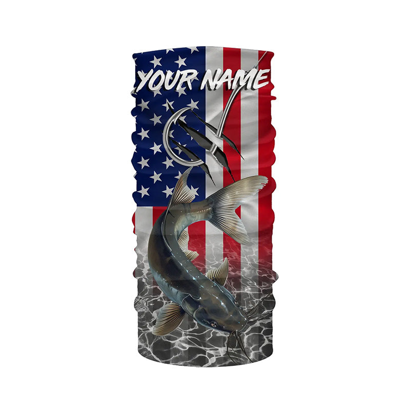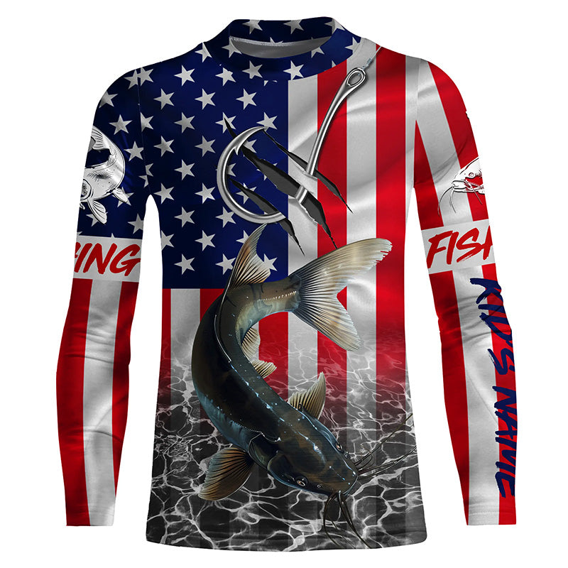 American Flag Catfish Fish hook Custom long sleeve performance Fishing Shirts, Catfish Fishing jerseys NQS5535