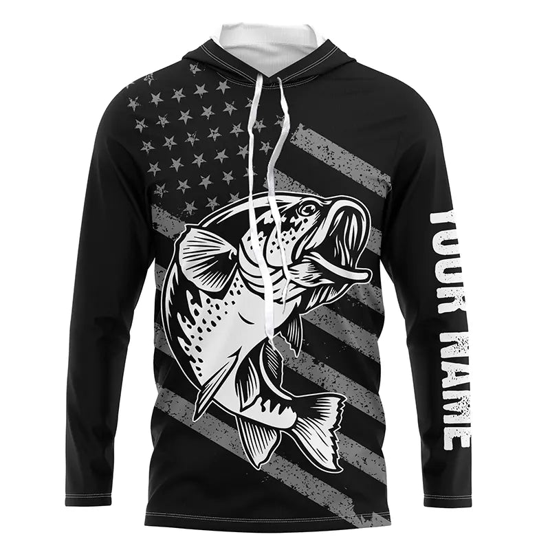 Bass Fishing USA Flag Custom Long sleeve Performance Fishing Shirts, Patriotic Bass Fishing Jerseys TTN113