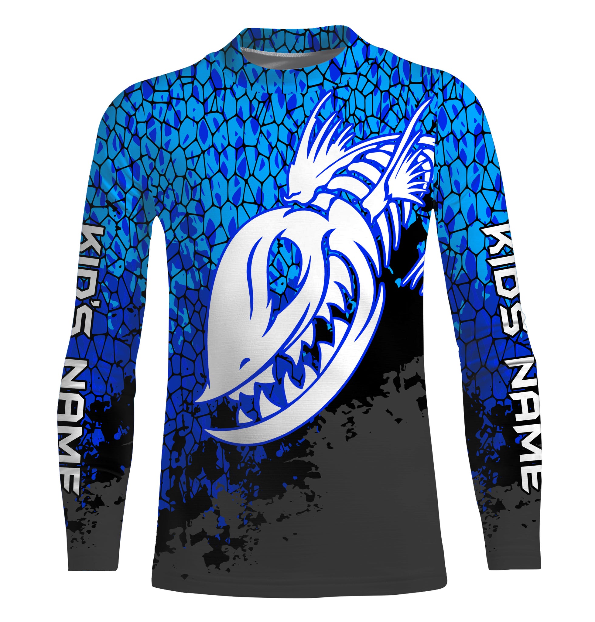 Blue Camo Fish Reaper Skull Custom Long Sleeve Performance Fishing Shirts TTN92