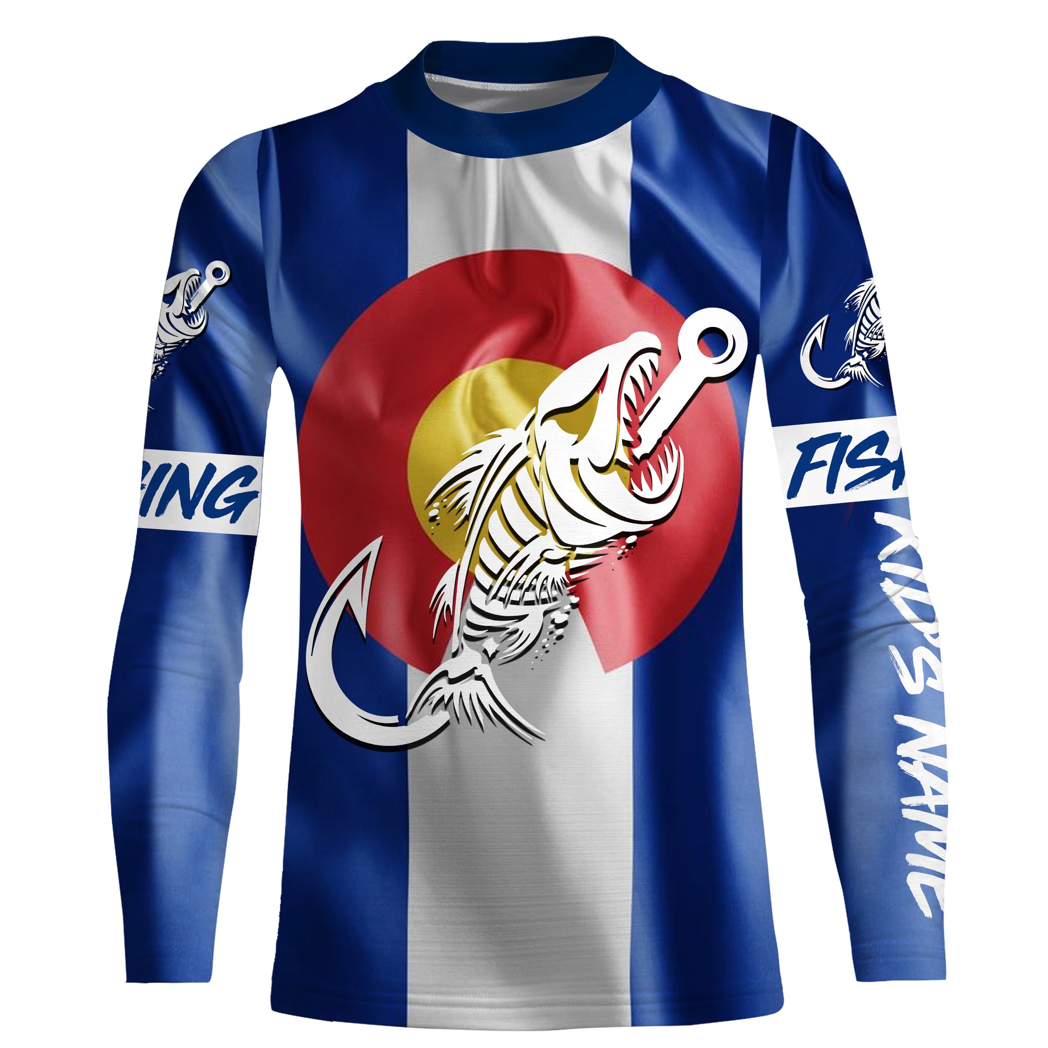 CO Fishing Custom Colorado Flag Fish hook skull Custom Name sun protection custom fishing shirts NQS3307