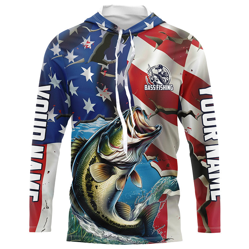 Personalized American Flag Bass Long Sleeve Fishing Shirts, Patriotic Bass Fisherman Jerseys IPHW6099
