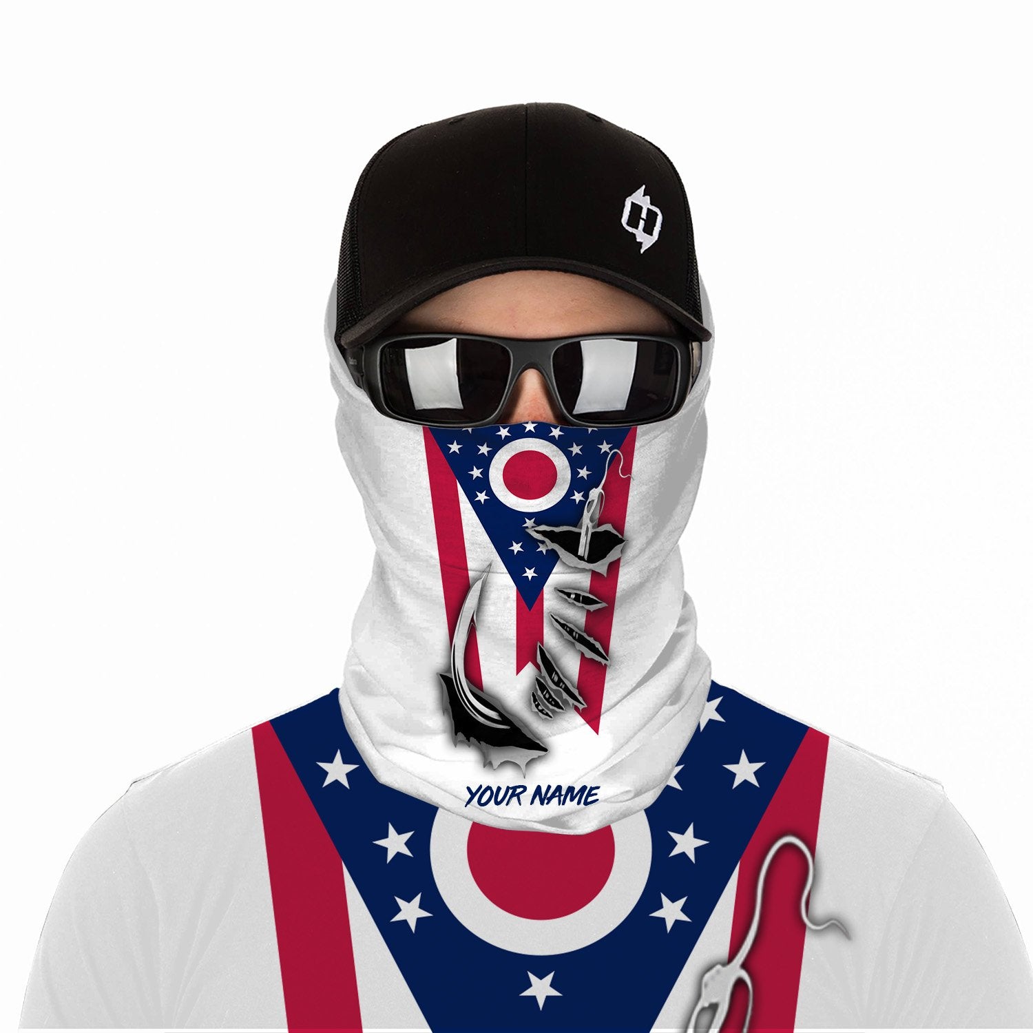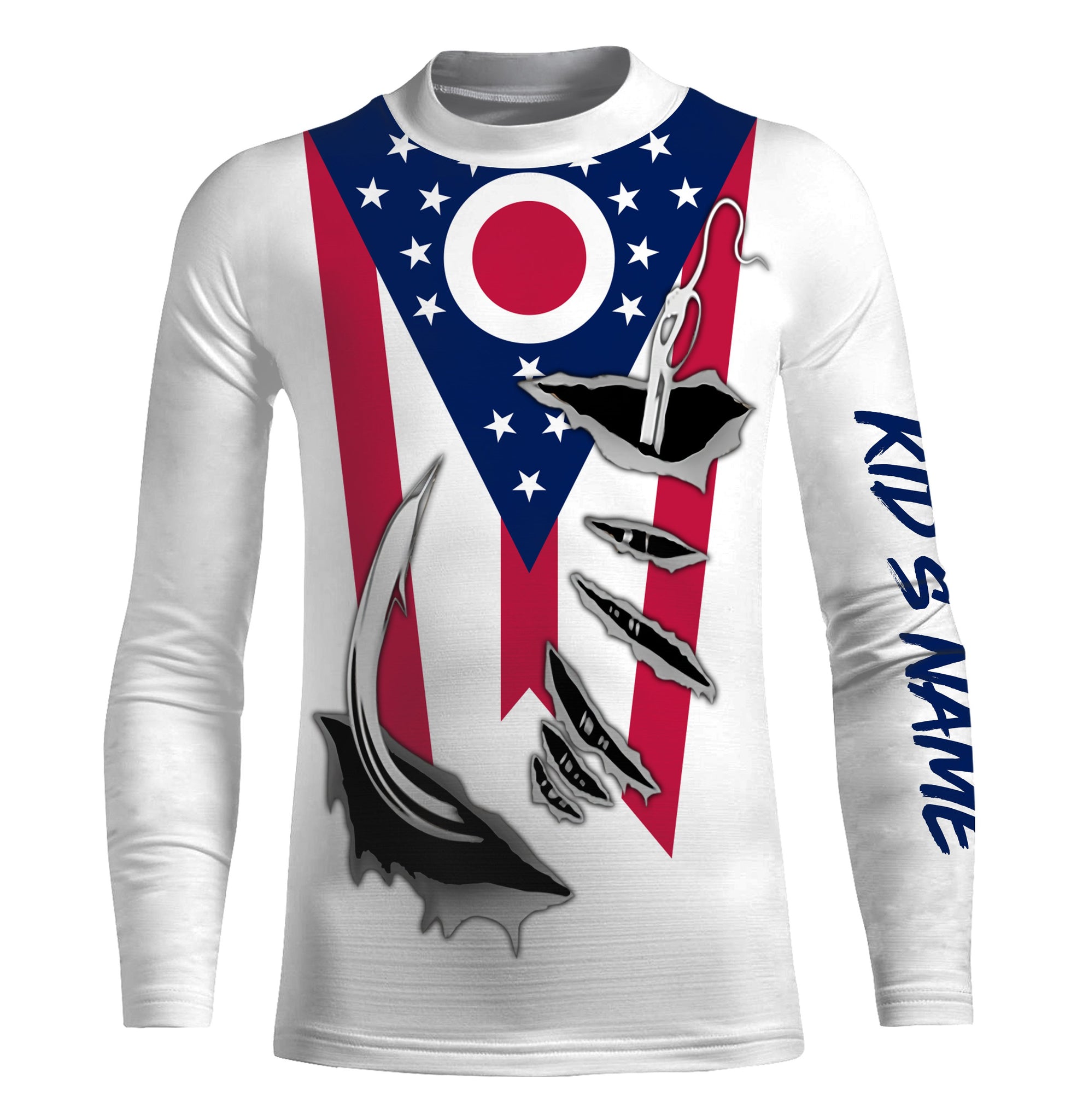 OH Ohio Flag Fishing 3D Fish Hook UV protection quick dry customize name long sleeves shirts personalized Patriotic fishing apparel gift for Fishing lovers IPH1906