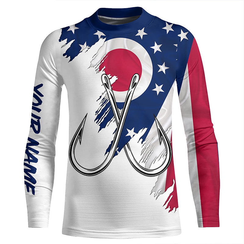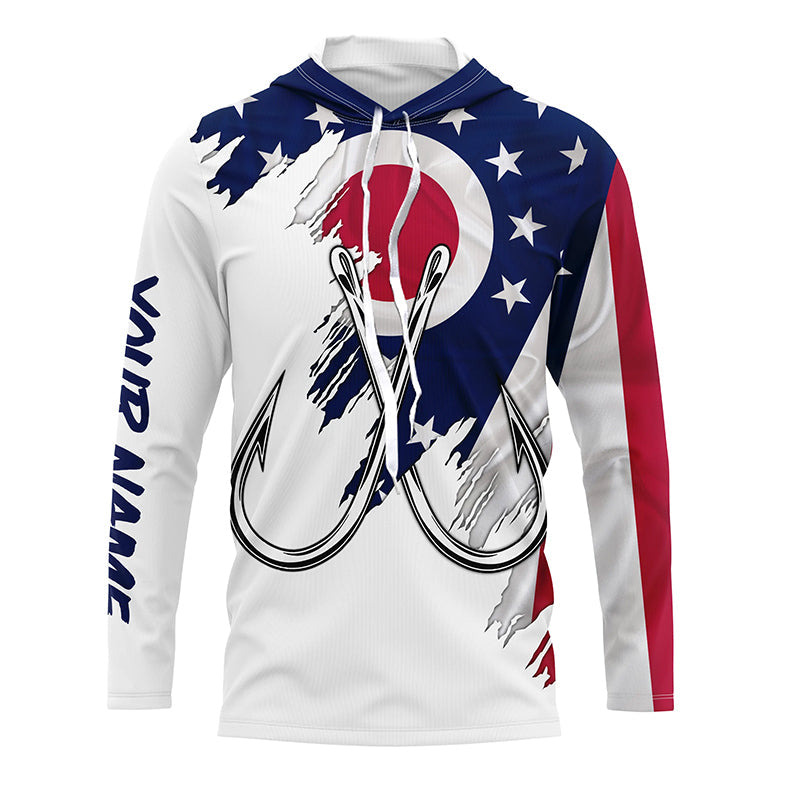 Ohio flag OH Fishing Fish Hook UV protection custom long sleeve Patriotic fishing apparel NQS8274