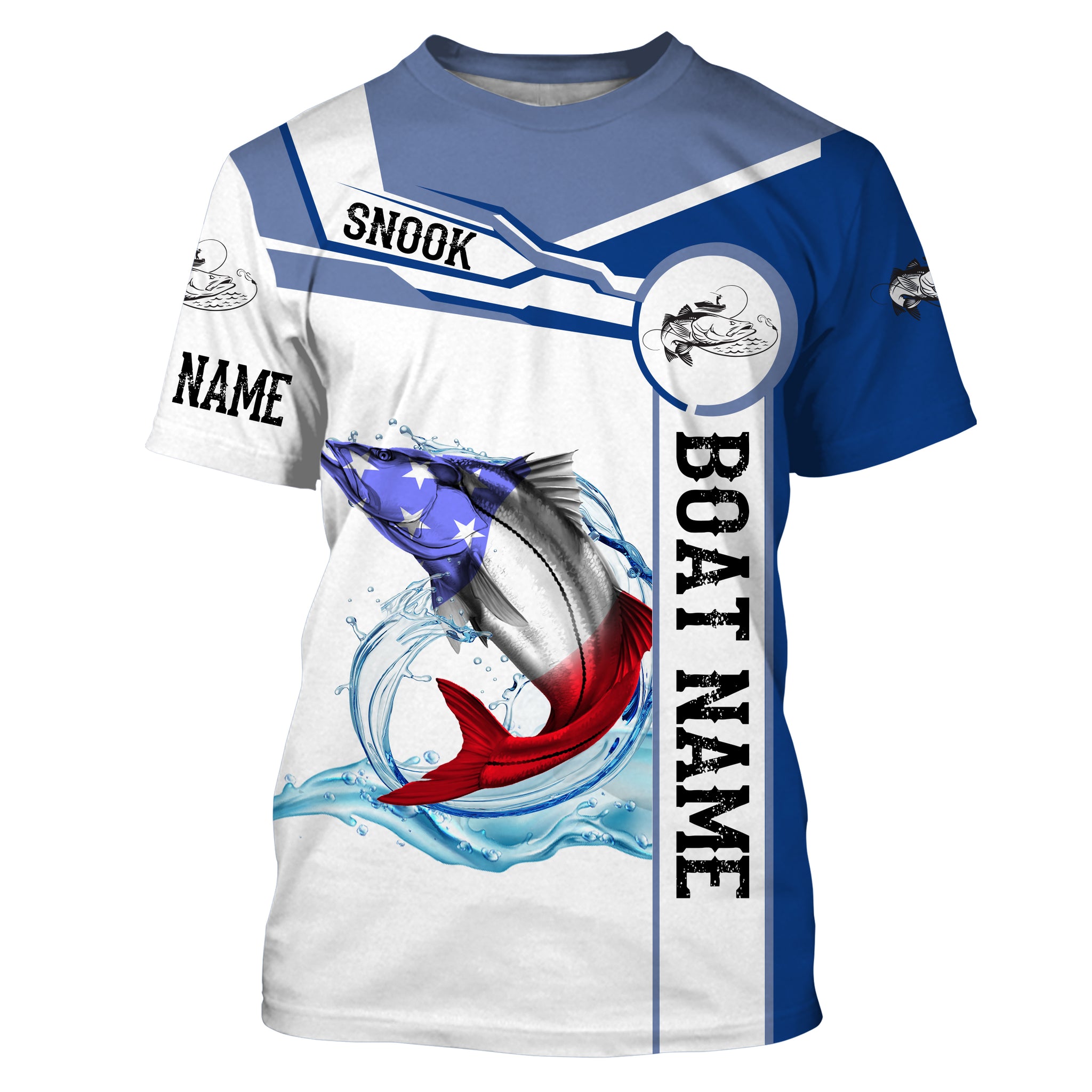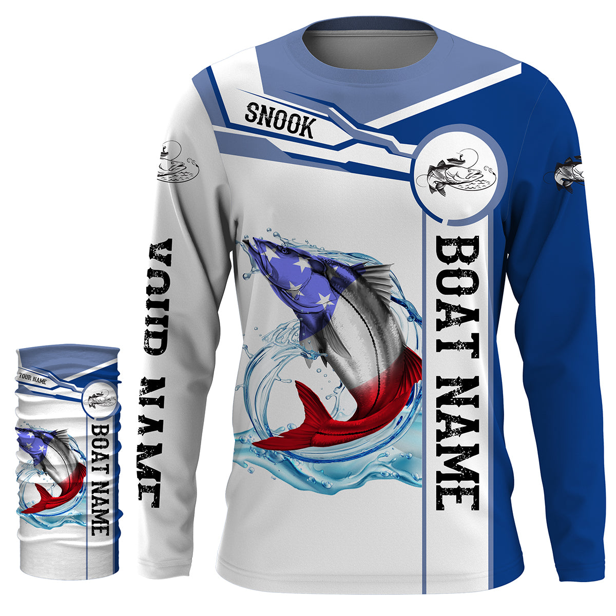 Snook Fishing American Flag Custom name and boat name performance Long Sleeve Fishing Shirts, Patriotic Fishing gifts NQS2364