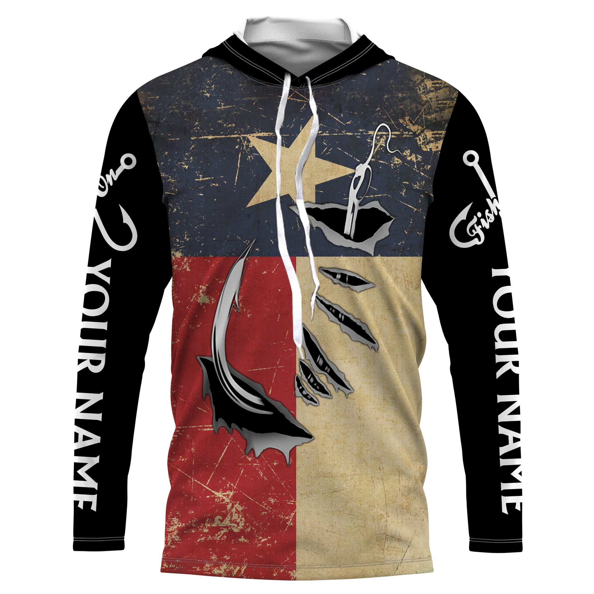 Texas Fishing 3D Fish Hook patriotic fish on UV protection custom name long sleeve fishing apparel NQS3587