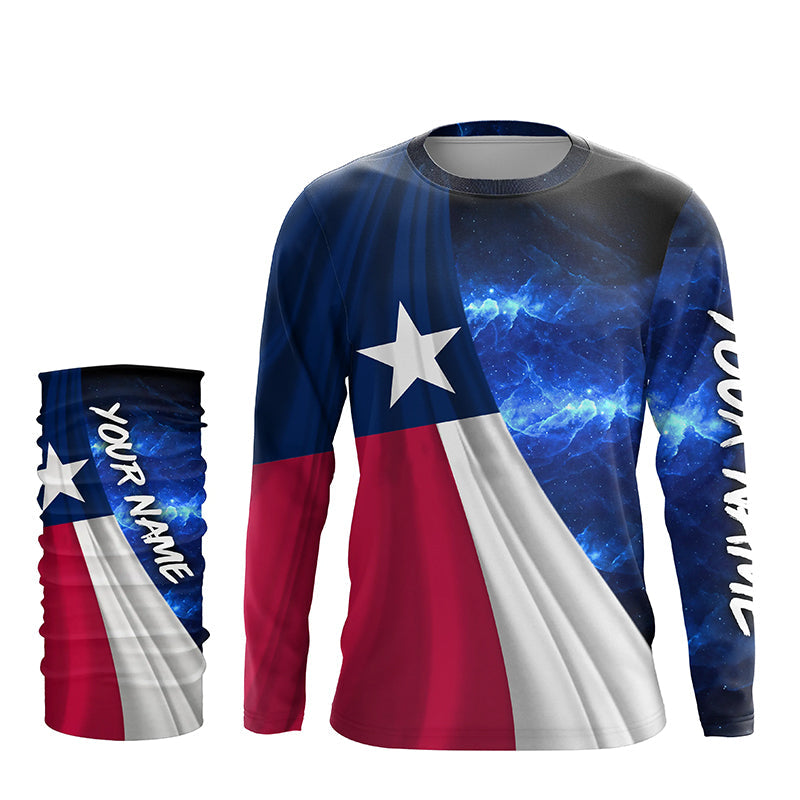 Texas Flag Universe patriotic Custom name blue galaxy UV protection long sleeve Shirts NQS8025