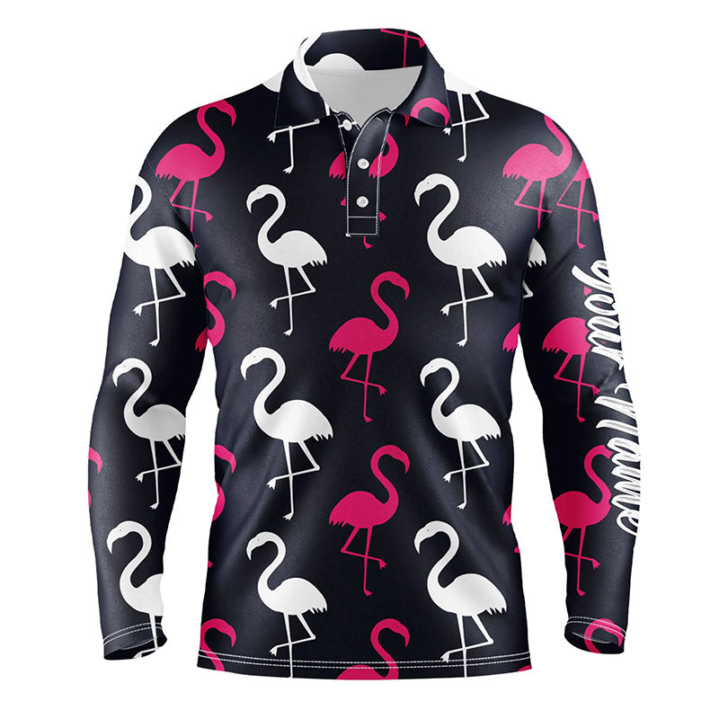 Mens golf polo shirt pink white flamingos pattern custom team flamingo golf shirts for men NQS5186