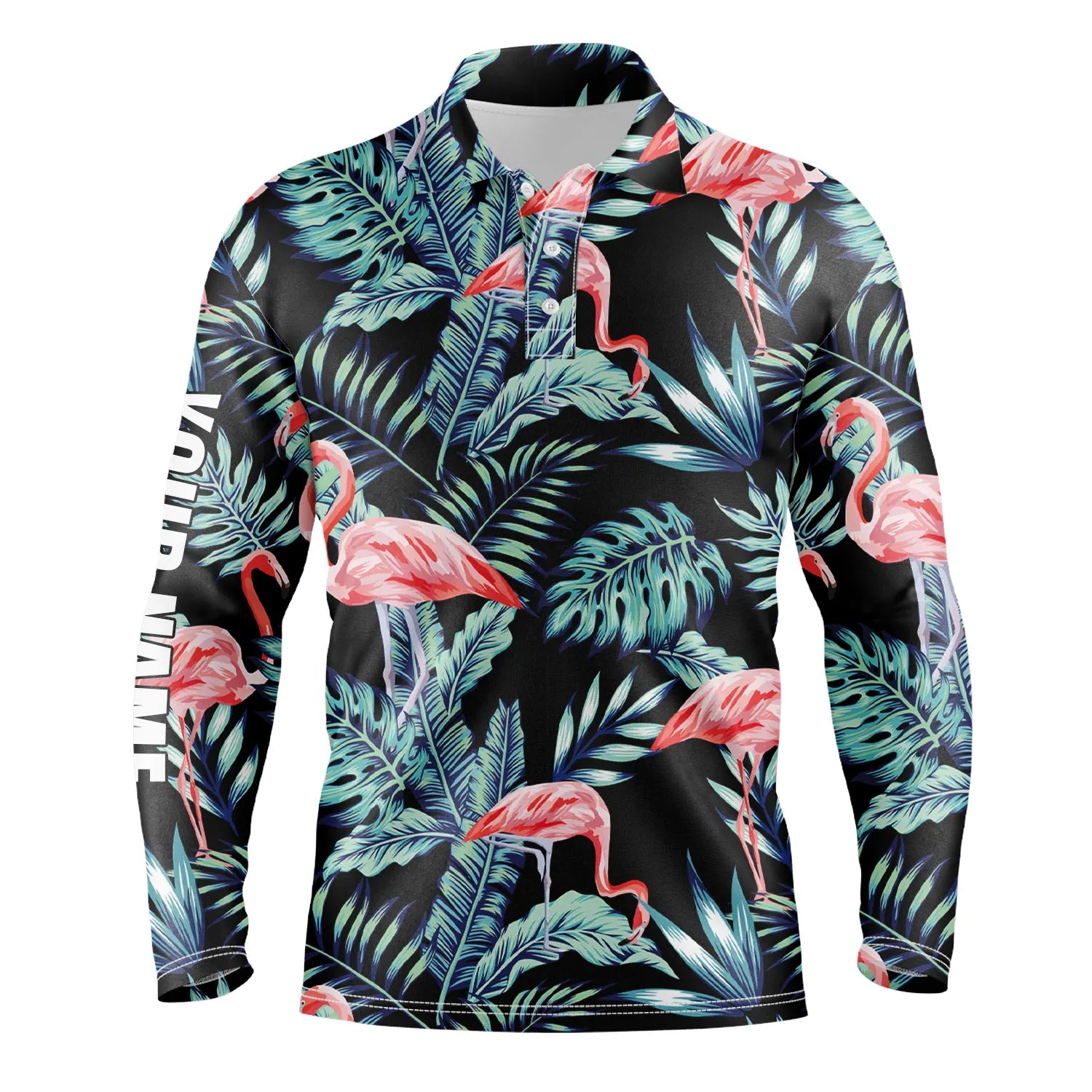 Mens golf polo shirts blue forest jungle pattern pink flamingo golf shirts custom golf shirts for men NQS4840
