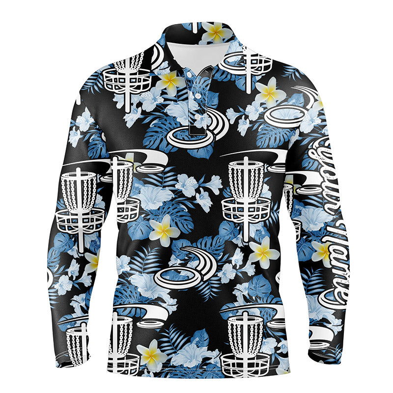 Disc golf hole basket blue leaf flower pattern golf shirt custom name disc golf polo shirts for men NQS4717