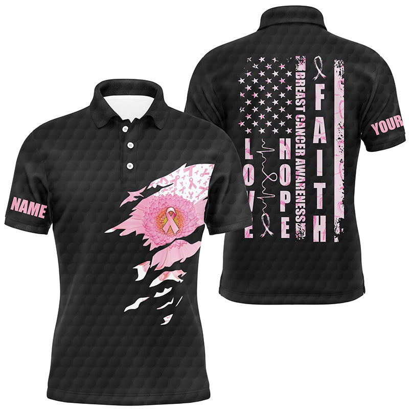 Faith Hope Love Flower Breast Cancer Awareness Mens Polo Shirts American Flag Golf Tops For Men LDT0261