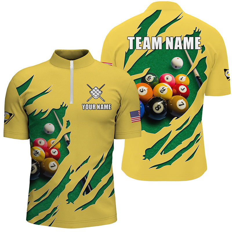 ✔️ Custom Unisex Billiard Shirts Our uniquely designed billiard polo and quarter-zip shirts are ideal for avid poolers who want to make a bold statement. With a stylish form and distinctive design, these shirts set you apart, highlighting your passion and confidence in billiards. Whether you are a professional player or play billiards for fun, we are ready to create great shirts for you and your team. Add your personal touch to create a one-of-a-kind shirt that carries your unique imprint.