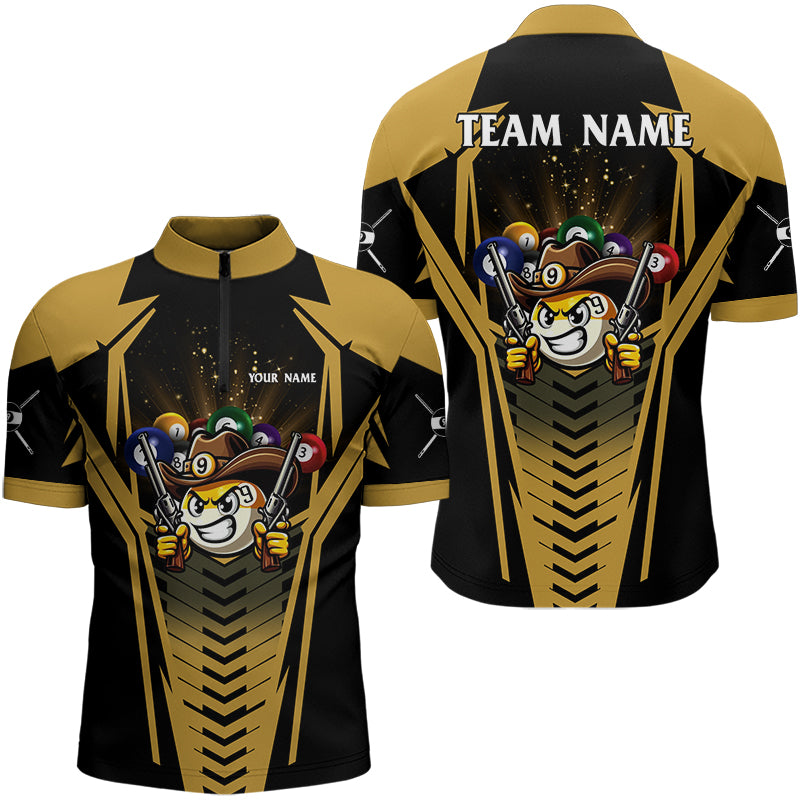 Personalized 9 Ball Cowhand Billiard Shirts For Men Funny Billiard Shirts Billiard Jerseys |Yellow TDM3105