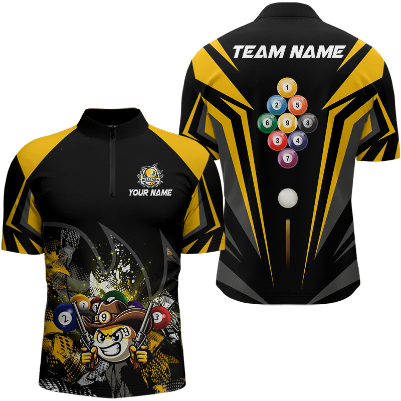 Funny 9 Ball Cowhand Billiard Shirts For Men Custom Yellow Black 9 Ball Pool Billiard Jerseys TDM3106