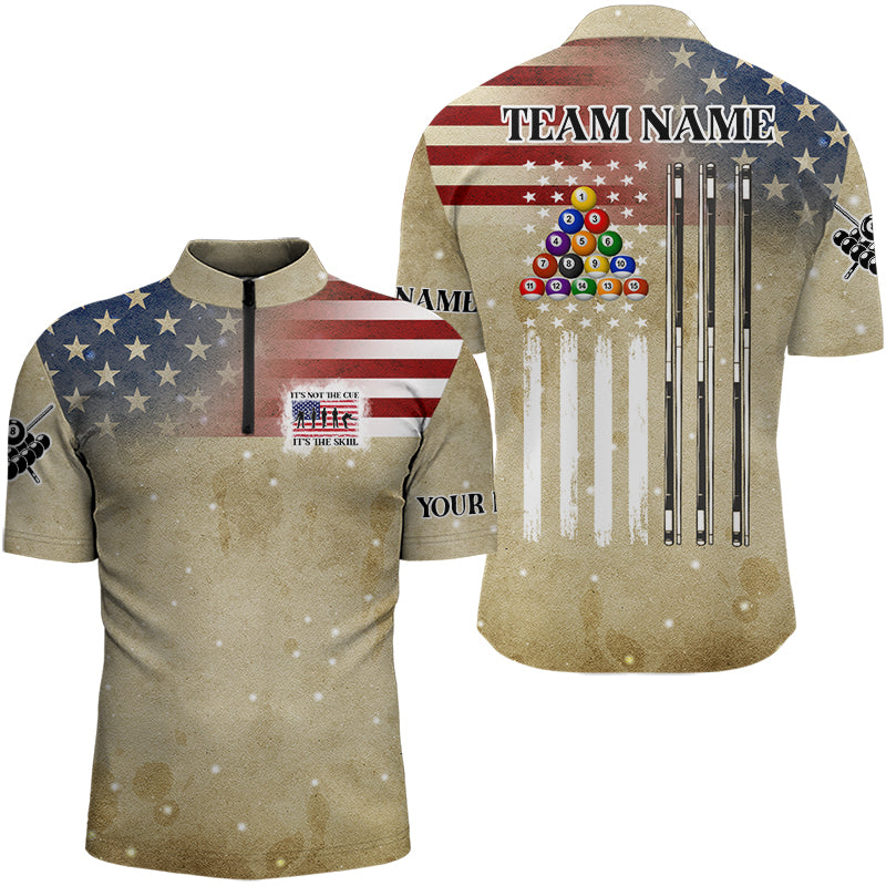 Vintage Gold American Flag Custom Patriotic Billiard Shirts For Men, Funny Saying Billiard Jerseys TDM3123