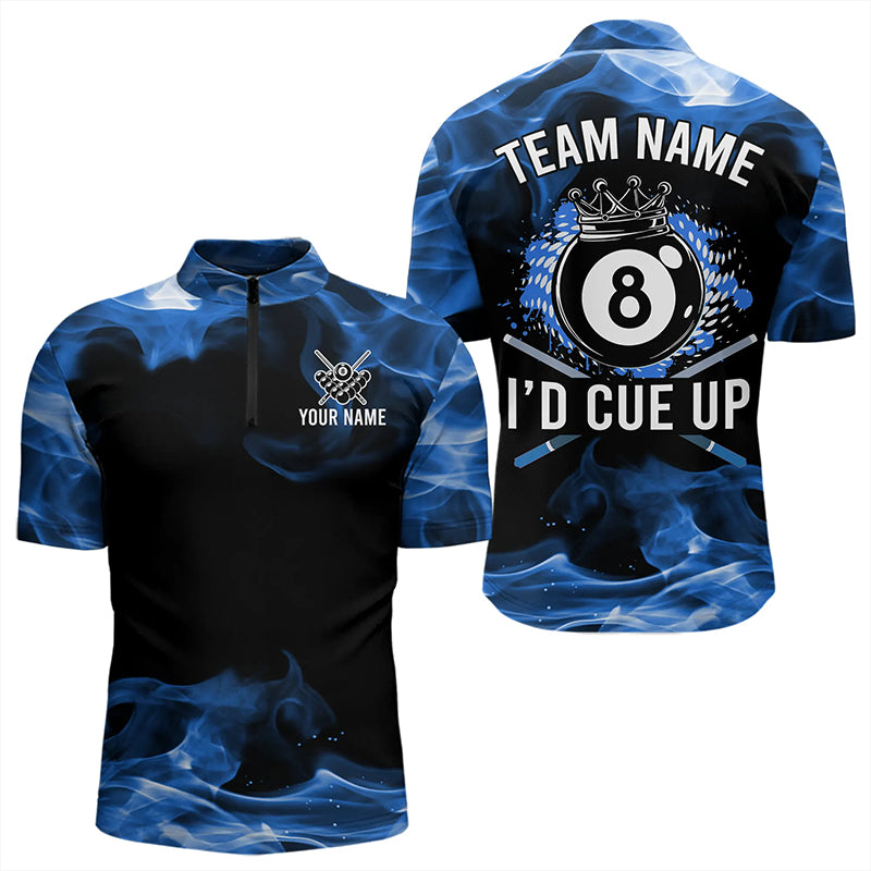 I'D Cue Up 8 Ball Pool Crown Blue Flaming Custom Billiard Shirts For Men, Funny Billiard Jerseys TDM3233