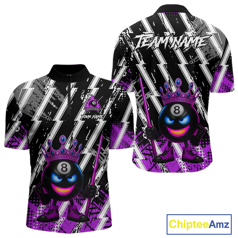 Funny 8 Ball Pool Crown Billiard Shirt For Men Custom Billiard Jersey Team Polo & 1/4 Zip |Purple TDM5083