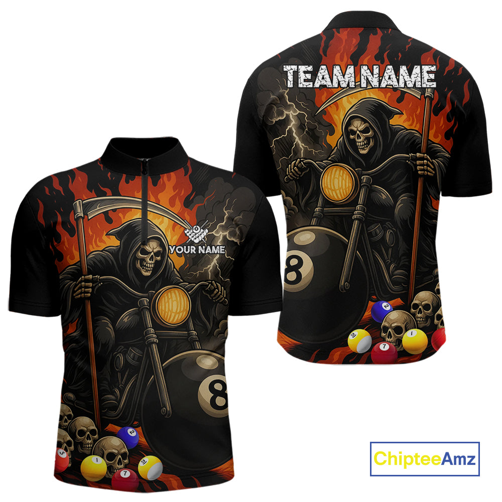 Personalized Grim Reaper Motorcycle Billiards Shirt For Men Custom Funny 8 Ball Pool Team Jersey TDM5263