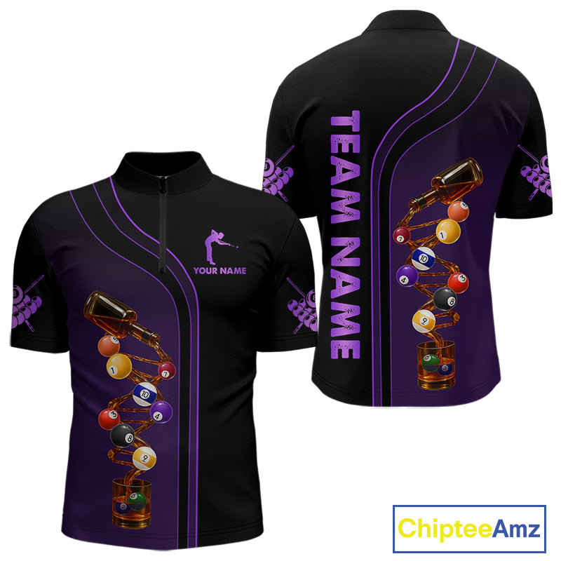 Funny DNA Wine Billiard Shirt For Men Custom Pool Team Shirts, Billiard Jersey Polo & Zip |Purple TDM5284