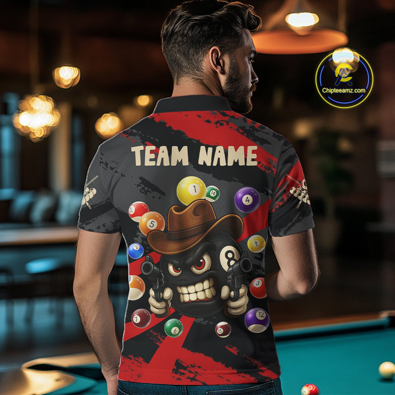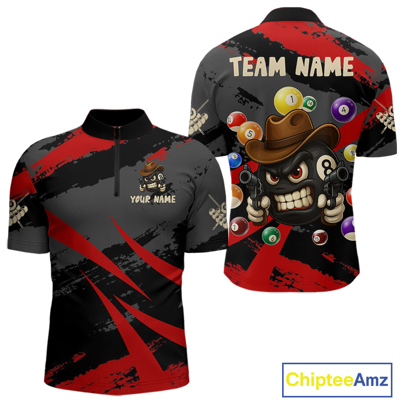 Black And Red Funny 8 Ball Pool Billiard Shirt For Men Custom Billiard Team Jersey Polo & 1/4 Zip TDM5315