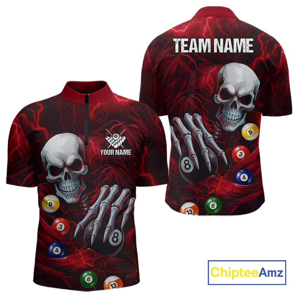 Personalized Red Funny Skeleton Pool Balls Billiard Shirt For Men, Skull Billiard Team Jerseys TDM5343