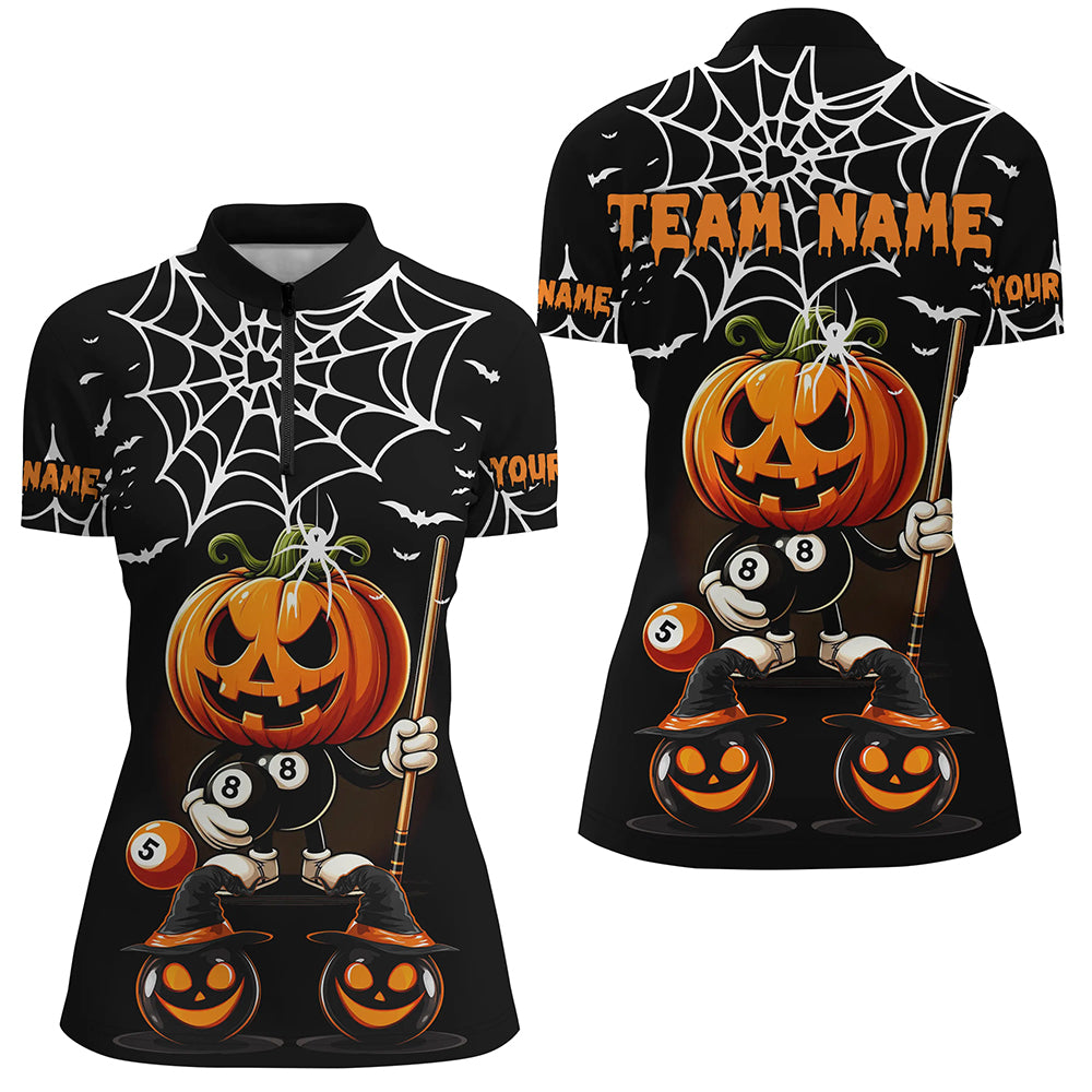 Personalized Funny Pumpkin 8 Ball Pool Billiard Shirts For Women, Halloween Gifts Billiard Costumes TDM2310