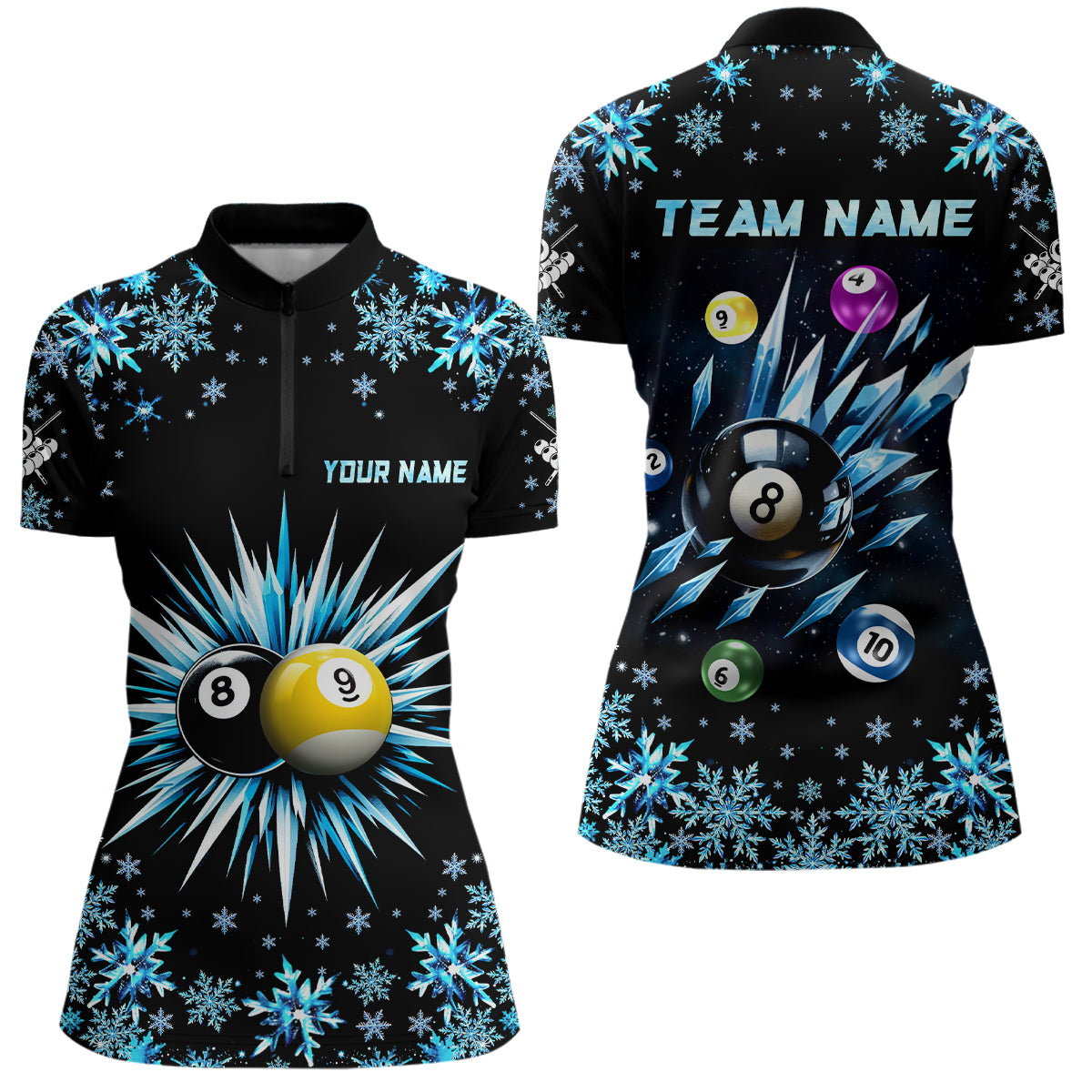 Personalized Snowflake 8 Ball & 9 Ball Billiard Shirts For Women Custom Funny Icy Billiard Jerseys TDM2466