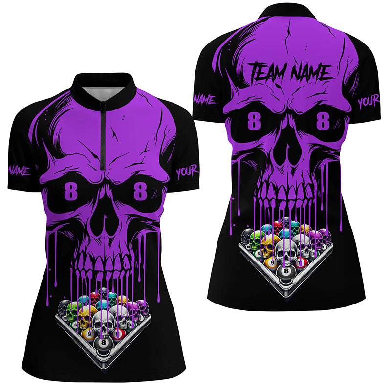 Personalized Skull Billiard Balls Funny Pool Shirts For Women, Unique Billiard Jersey Apparel |Purple TDM2777