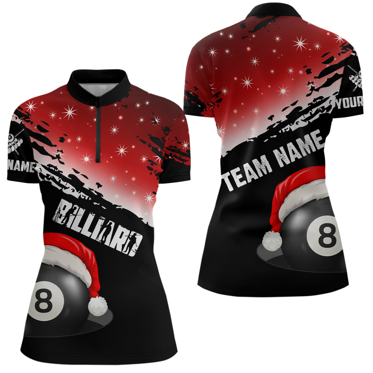 Black And Red Christmas Funny Santa 8 Ball Pool Billiard Shirts For Women Custom Xmas Billiard Jersey TDM2926