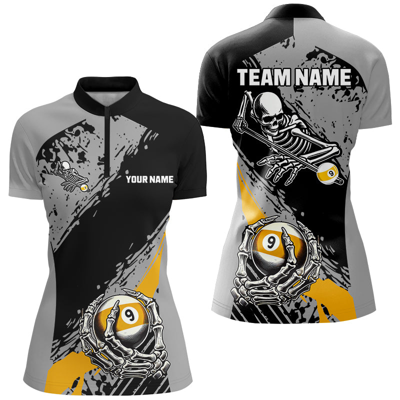 9 Ball Skeleton Custom Billiard Polo & 1/4 Zip Shirts For Women, Funny 9 Ball Pool Billiard Jerseys TDM2944