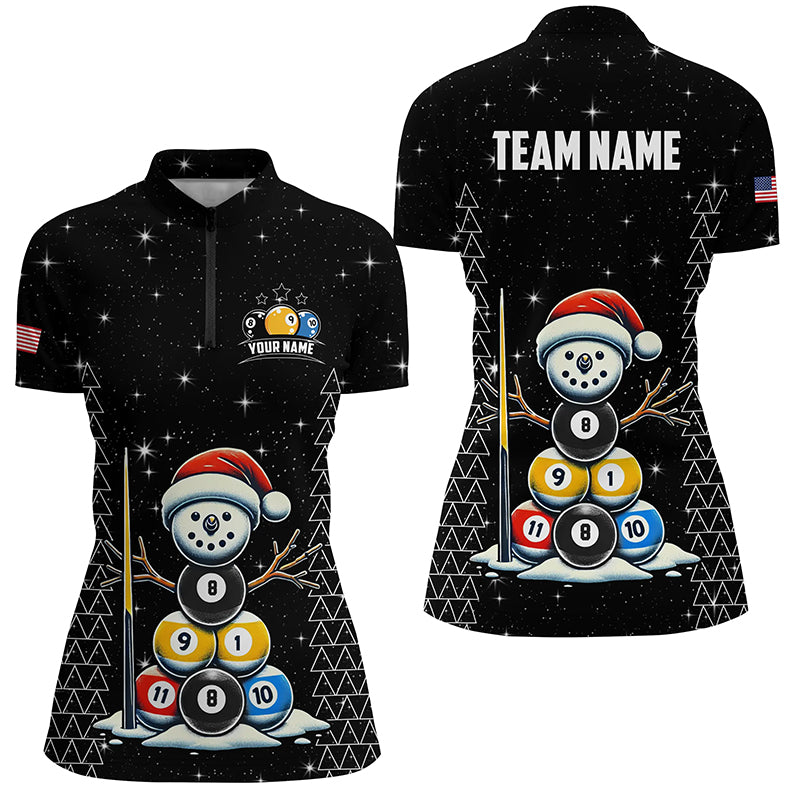 Custom Galaxy Funny Snow Billiard Balls Christmas Pool Shirts For Women, Xmas Billiard Shirts Jerseys TDM2963