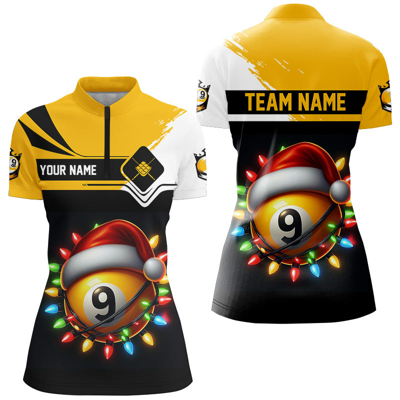 Funny 9 Ball Pool Colorful Christmas Light Custom Women Billiard Shirt 9 Ball Xmas Billiard Jersey TDM2965