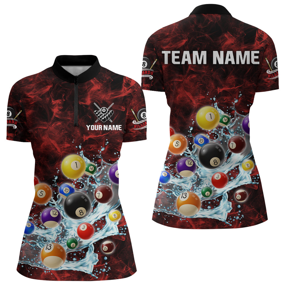 Funny Billiard Balls In Water Custom Smoke Pattern Women Billiard Shirts, Pool Billiard Jerseys |Red TDM2988