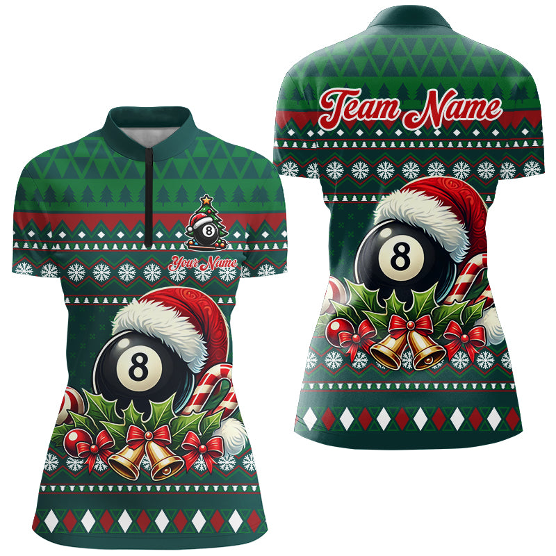 Funny Green Christmas Santa Hat 8 Ball Pool Billiard Shirts For Women Custom Xmas Billiard Jerseys TDM3012