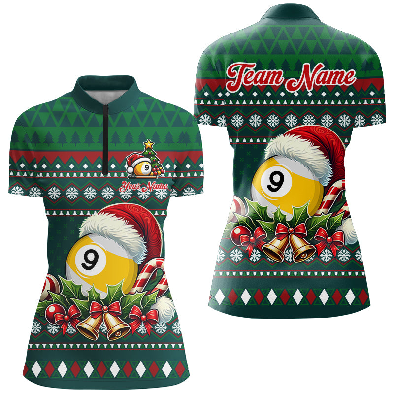 Funny Green Christmas Santa Hat 9 Ball Pool Billiard Shirts For Women Custom Xmas Billiard Jerseys TDM3013