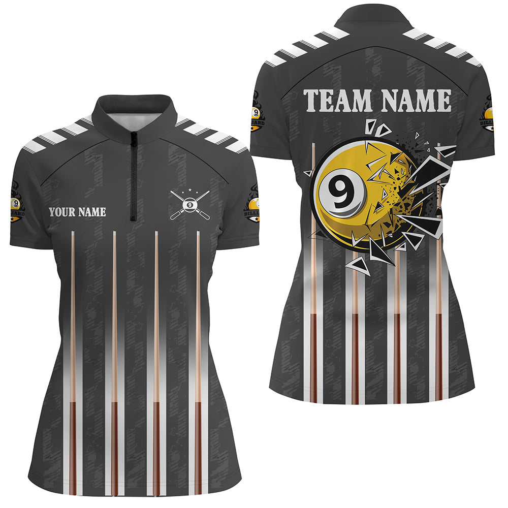 Funny Crack 9 Ball Pool Custom Women Billiard Polo & 1/4 Zip Shirts, 9 Ball Pool Billiard Jerseys TDM3046