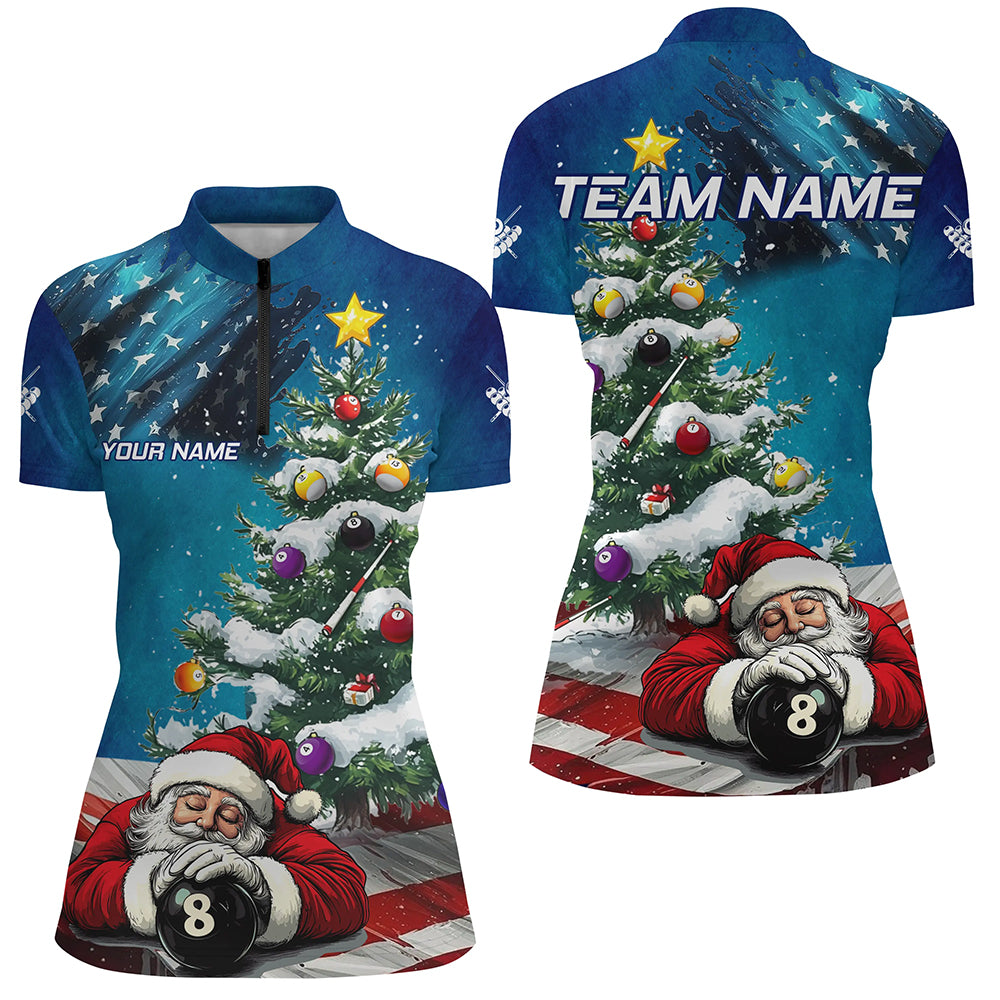 Funny Santa Christmas Pine Tree Custom American Flag Billiard Shirts For Women, Xmas Billiard Jerseys TDM3128
