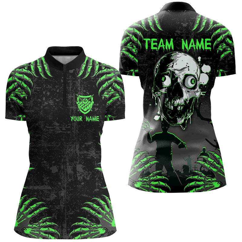 Funny Skull Claw Pattern Custom Women Billiard Shirts, Grunge Green Black Cool Billiard Jerseys TDM3203