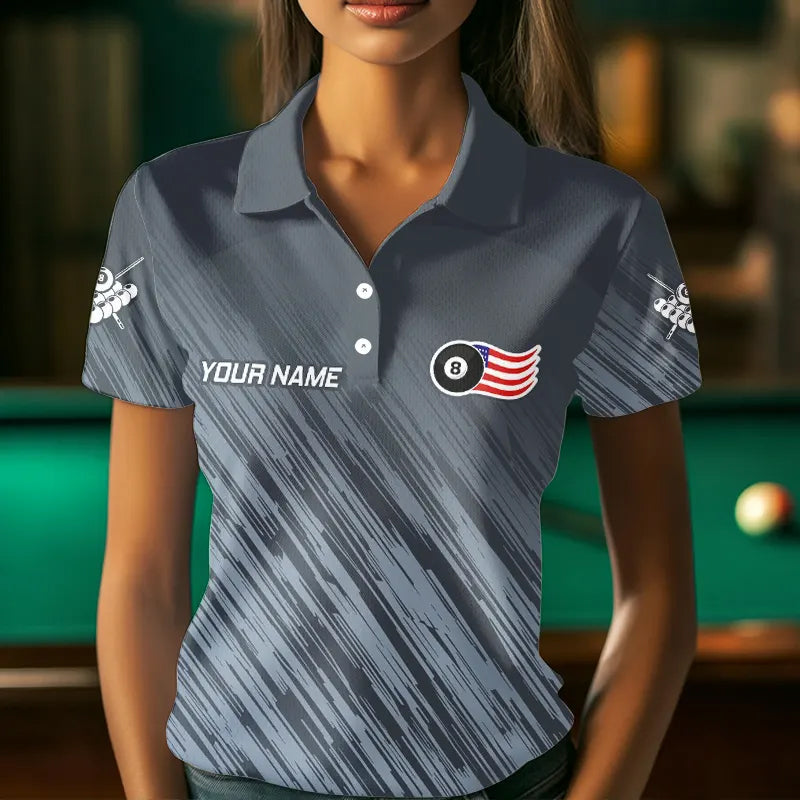 Personalized Funny 8 Ball Wings US Flag Grey Billiard Shirts For Women, Patriotic Billiard Jerseys TDM3603