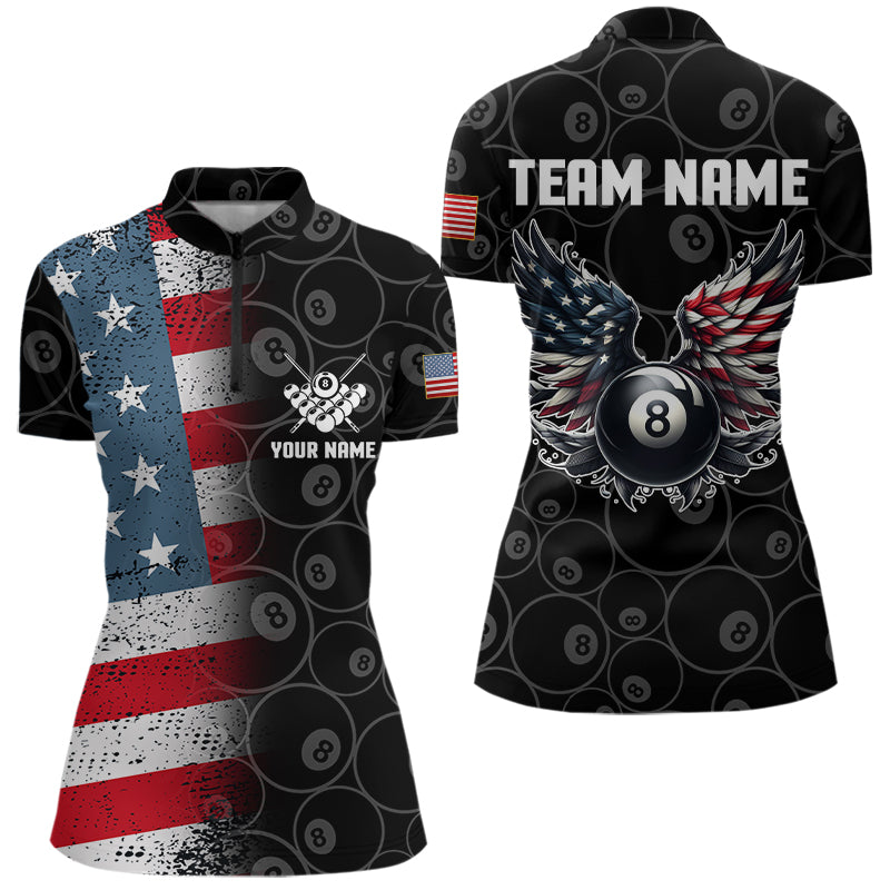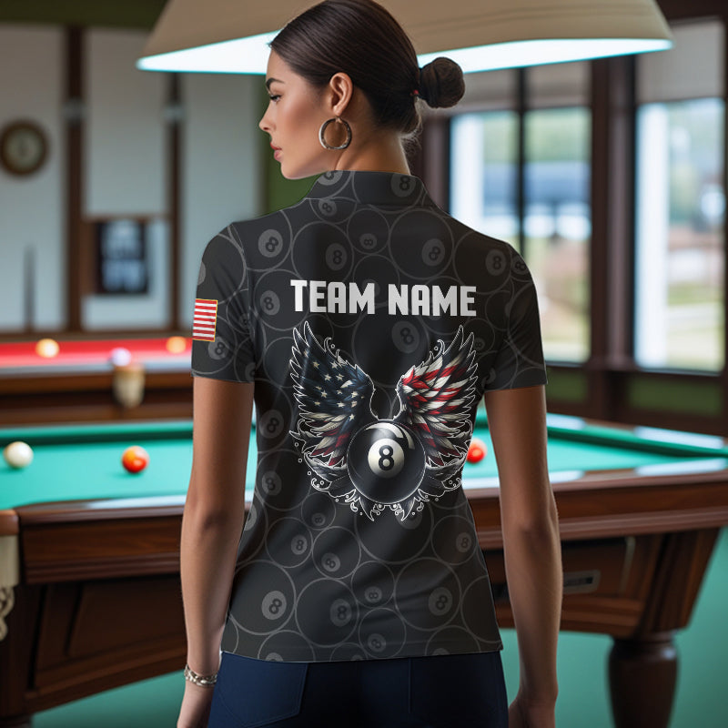 Personalized US Flag Funny 8 Ball Pool Wings Billiard Shirts For Women, American Team Billiard Jersey TDM3634