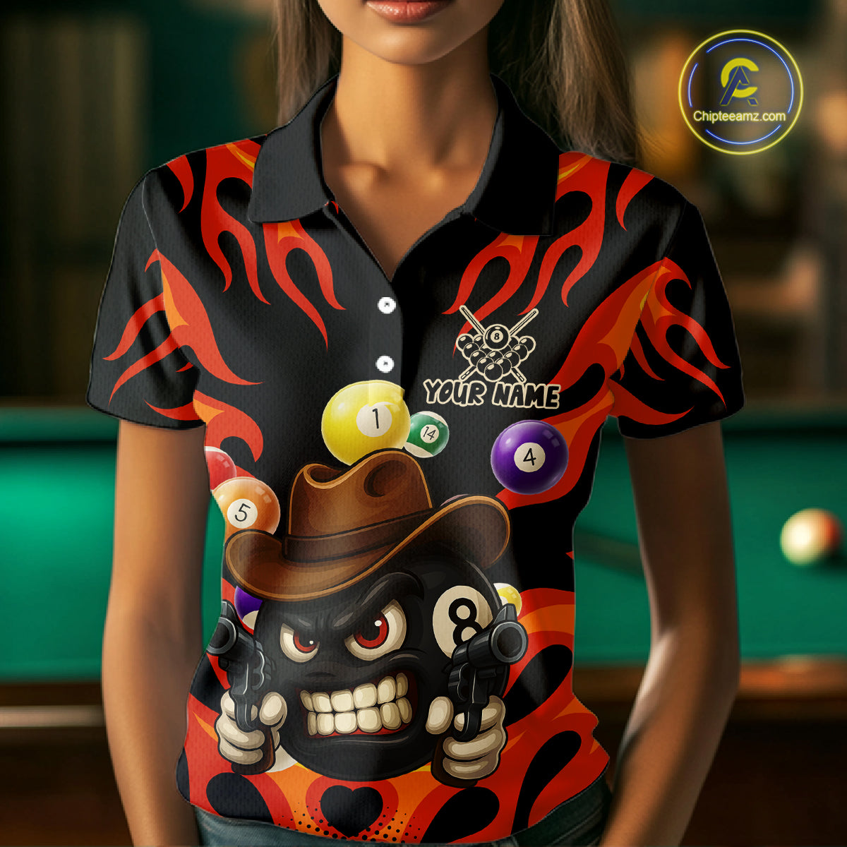 Personalized Red Funny Flame 8 Ball Billiard Shirt For Women Custom Pool Team Jersey Polo & 1/4 Zip TDM4782