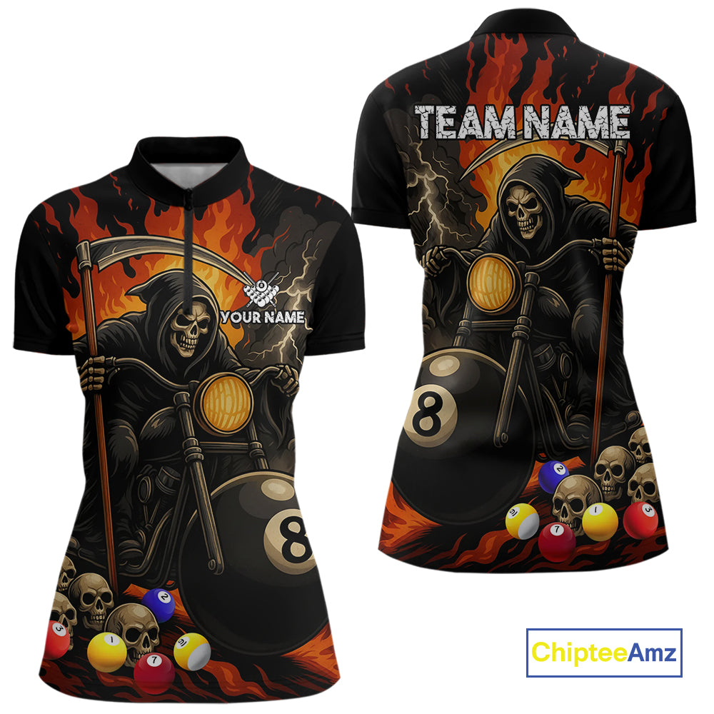 Personalized Grim Reaper Motorcycle Billiards Shirt For Women Custom Funny 8 Ball Pool Team Jersey TDM5263