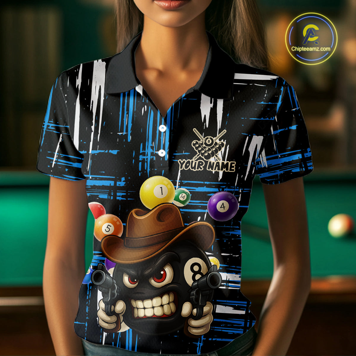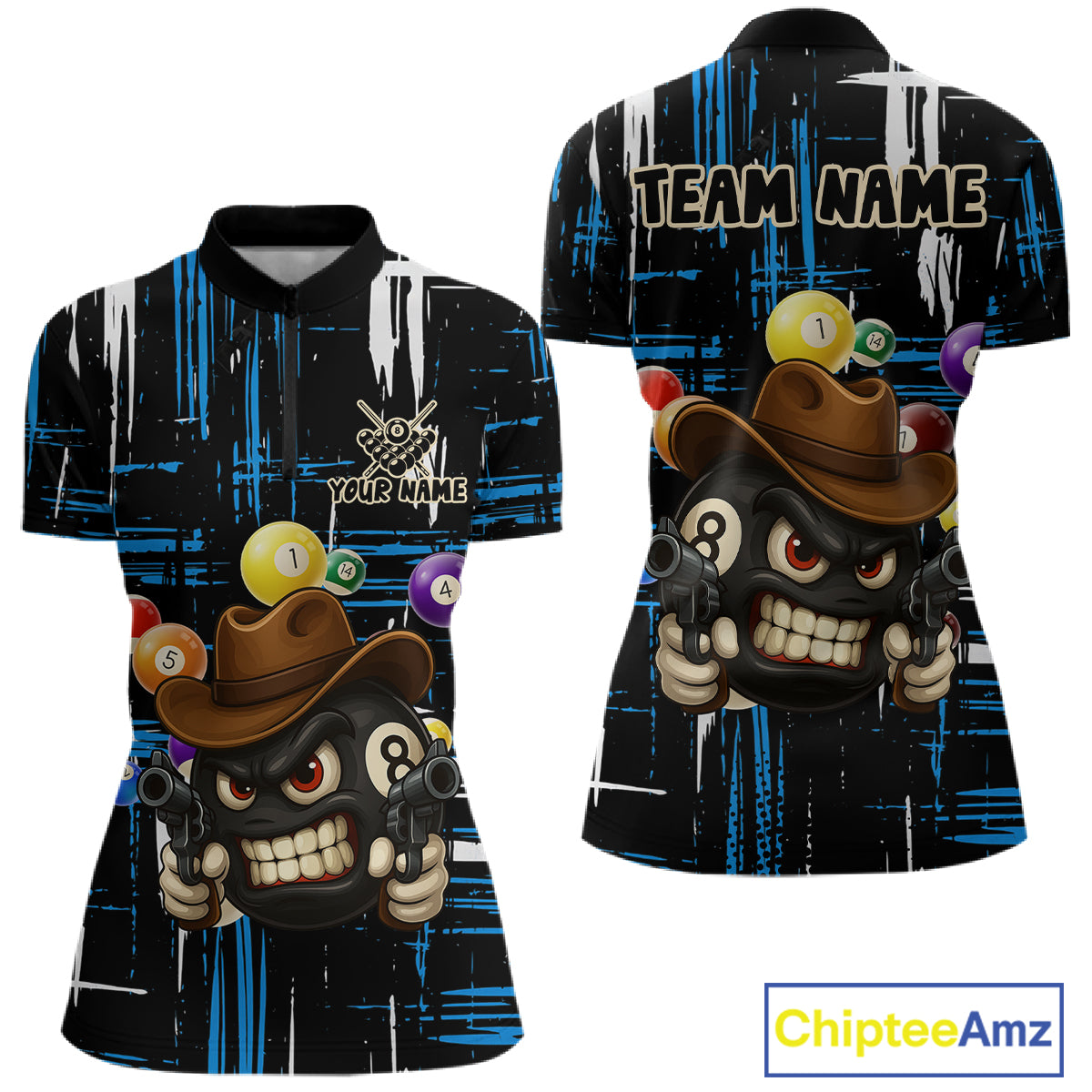 Personalized Blue Grunge Funny 8 Ball Billiard Shirt For Women, Pool Team Jersey Polo & 1/4 Zip TDM5286