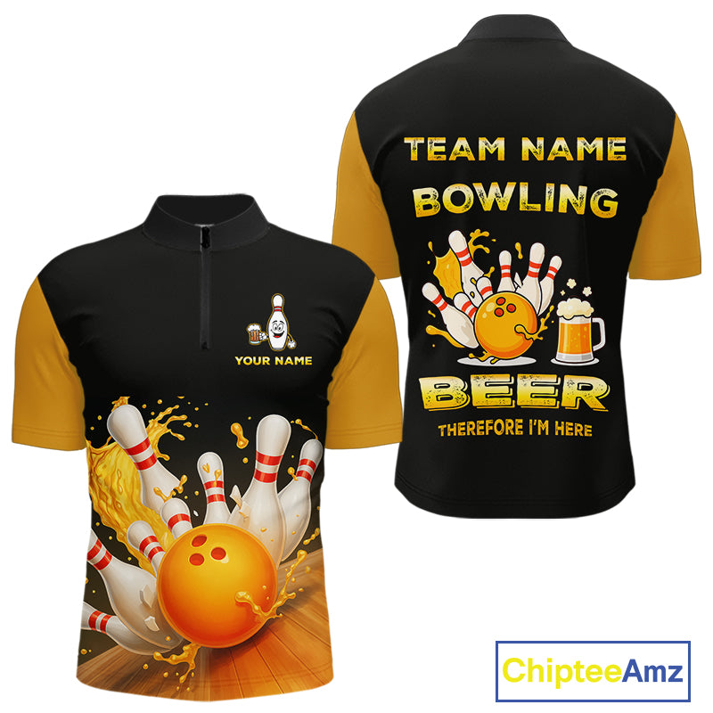 Bowling & Beer therefore i'm here custom funny Bowling shirts for Men, Bowling team apparel NQS10274