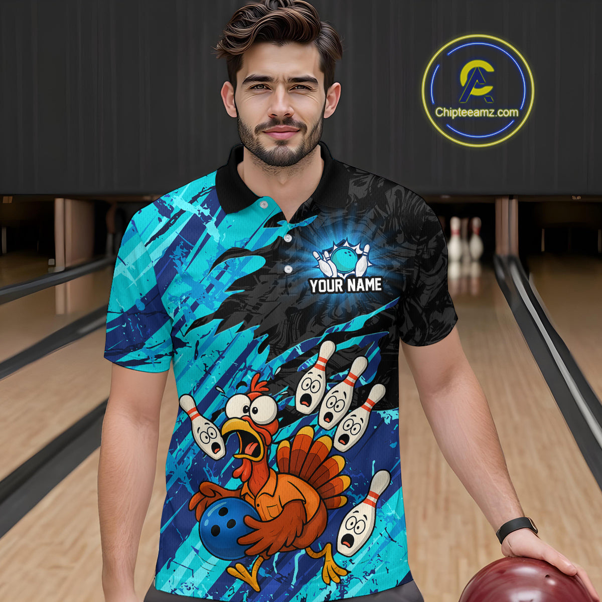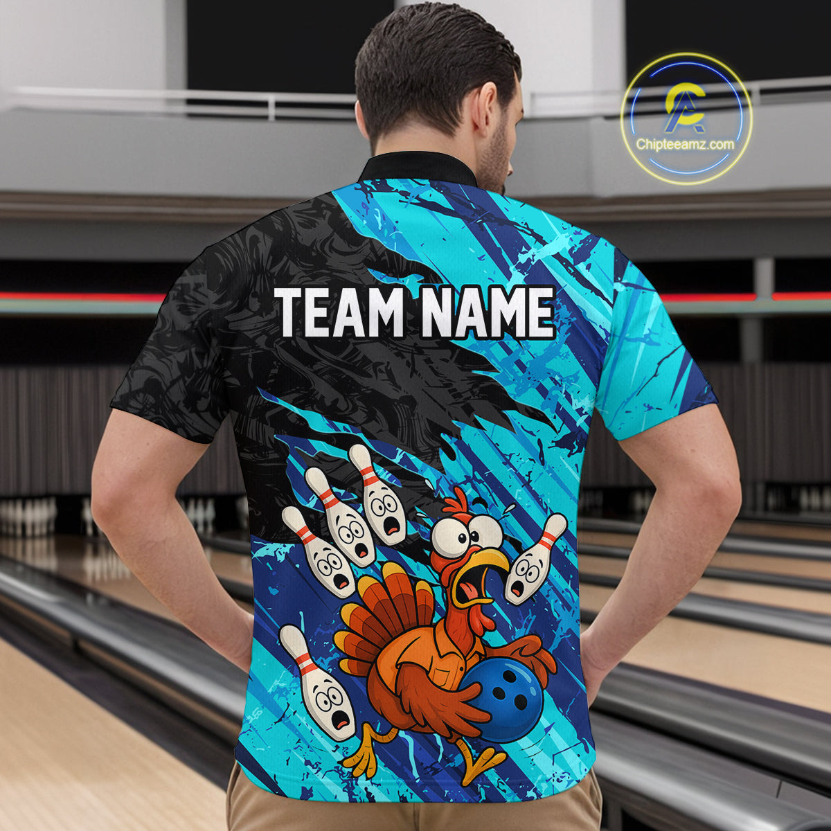 Custom Cyan Turkey Bowling Shirt Funny Ball Pin League Jersey for Men Polo Outfit QZT765